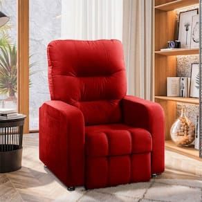 Poltrona Do Papai Reclinável Maldivas Suede Vermelho Plus Speciale Home Vermelho Como e bom ter um lugar para descansar depois de um longo dia no trabalho, e melhor ainda se este lugar for confortavel e relaxante. A poltrona Maldivas reclinavel e a melhor opcao para conseguir seus momentos de descanso e tonar seu momento de lazer ainda mais agradavel, e um movel sofisticado e vai valorizar a decoracao do seu ambiente. Perfeito para aquele momento de leitura ou assistir um filme na televisao, alem disso possui design moderno, onde a parte reclinavel remete a formas geometricas. Confira os detalhes desta poltrona maravilhosa que vai te encantar! Caracteristicas do Produto: Material da Estrutura: Madeira Macica Tratada Espuma: D 20 Peso Suportado: Ate 120 Quilos Possui Pes: Sim 4 Material dos Pes: Aluminio Poltrona e reclinavel Material do Assento: Espuma D 20 com percintas elasticas. Material do Encosto: 100 porcento Fibra Siliconada Tipo de Tecido: Corano