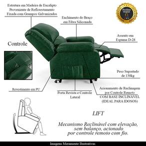 Diferenciais: Apoio de pés retrátil, acompanha controle para acionamento, elevação Lift, e bolso lateral para revistas e livros