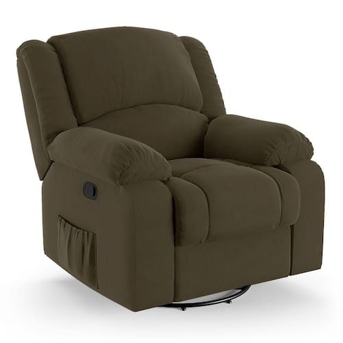 Diferenciais: Apoio de pés retrátil, poltrona giratória e balanço, acompanha controle para ativar massagem, gatilho lateral para acionar regulagem e bolso lateral para revistas e livros