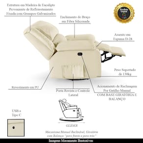 Mecanismo: Glider Manual Giratória e Balanço com USB Bivolt