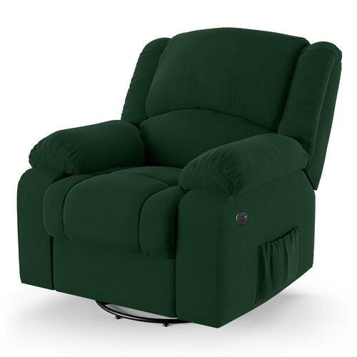 Poltrona Do Papai Reclinável Melim Glider Giratória Usb Veludo Fh1 - D'rossi Cor Verde
