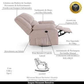 Mecanismo: Glider Manual Giratória e Balanço com USB Bivolt