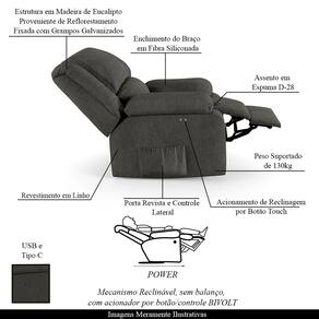 Que tal criar seu próprio home cinema? Aqui, vamos mostrar como você pode montar o seu! Com o local adequado, alguns itens decorativos e uma poltrona ideal, você garantirá um espaço confortável e imersivo. O primeiro passo é investir em equipamentos de alta qualidade! Olha só que lindeza a nossa Poltrona do Papai Reclinável Melim. Ela foi projetada para proporcionar máximo conforto e funcionalidade, esta poltrona é a escolha ideal para quem busca relaxamento, estilo e uma experiência de cinema privada. Com a conveniência do ajuste elétrico por meio de um Power botão touch Bivolt em uma das Braças, é possível encontrar a posição ideal com um simples toque, proporcionando uma experiência imersiva única e sem comparações. Contém também uma saída USB, que permite que você carregue seu celular enquanto relaxa. Ela conta com capacidade para suportar até 130 kg, oferecendo segurança e estabilidade ao consumidor. O revestimento em Linho oferece um toque de sofisticação e conforto, enquanto a estrutura em Madeira de Lei Eucalipto com Controle de Umidade, Proveniente de Reflorestamento, Fixa com Grampos Galvanizados garante resistência e durabilidade. O braço Braço foi preenchido em Fibra Siliconada e assento/encosto foi preenchido com espuma D-28, respectivamente, para um conforto adicional. O assento (fixo) e o apoio de Pés Retrátil proporcionam um apoio perfeito para suas pernas, aumentando o conforto. O encosto reclinável, possibilita ajustá- lo para a posição ideal de relaxamento. Já os pés fixos foram feitos em aço revestido com plástico, adicionando um toque de elegância ao produto. E tem mais!! Ela contém Bolso lateral para revistas e controle nas braças perfeito para armazenar livros e outros objetos, mantendo tudo ao seu alcance. Com um design moderno e prático, esta poltrona se tornará o destaque da sua sala de estar. Afinal, sua casa merece a Poltrona do Poltrona do Papai Reclinável Melim Power Touch USB. Adquira a sua agora mesmo e transforme sua sala de estar em um verdadeiro cinema!