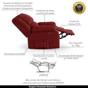 Que tal criar seu próprio home cinema? Aqui, vamos mostrar como você pode montar o seu! Com o local adequado, alguns itens decorativos e uma poltrona ideal, você garantirá um espaço confortável e imersivo. O primeiro passo é investir em equipamentos de alta qualidade! Olha só que lindeza a nossa Poltrona do Papai Reclinável Melim. Ela foi projetada para proporcionar máximo conforto e funcionalidade, esta poltrona é a escolha ideal para quem busca relaxamento, estilo e uma experiência de cinema privada. Com a conveniência do ajuste elétrico por meio de um Power botão touch Bivolt, é possível encontrar a posição ideal com um simples toque, proporcionando uma experiência imersiva única e sem comparações. Ela conta com capacidade para suportar até 130 kg, oferecendo segurança e estabilidade ao consumidor. O revestimento em Veludo oferece um toque de sofisticação e conforto, enquanto a estrutura em Madeira de Lei Eucalipto com Controle de Umidade, Proveniente de Reflorestamento, Fixa com Grampos Galvanizados garante resistência e durabilidade. O braço Braço foi preenchido em Fibra Siliconada e assento/encosto foi preenchido com espuma D-28, respectivamente, para um conforto adicional. O assento (fixo) e o apoio de Pés Retrátil proporcionam um apoio perfeito para suas pernas, aumentando o conforto. O encosto reclinável, possibilita ajustá- lo para a posição ideal de relaxamento. Já os pés fixos foram feitos em aço revestido com plástico, adicionando um toque de elegância ao produto. E tem mais!! Ela contém Bolso lateral para revistas e controle nas braças perfeito para armazenar livros e outros objetos, mantendo tudo ao seu alcance. Com um design moderno e prático, esta poltrona se tornará o destaque da sua sala de estar. Afinal, sua casa merece a Poltrona do Papai Reclinável Melim Power Touch. Adquira a sua agora mesmo e transforme sua sala de estar em um verdadeiro cinema!