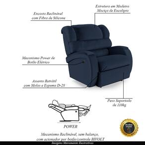 Que tal criar seu próprio home cinema? Aqui, vamos mostrar como você pode montar o seu! Com o local adequado, alguns itens decorativos e uma poltrona ideal, você garantirá um espaço confortável e imersivo. O primeiro passo é investir em equipamentos de alta qualidade! Olha só que lindeza a nossa Poltrona Reclinável do Papai Napoli. Ela foi projetada para proporcionar máximo conforto e funcionalidade, esta poltrona é a escolha ideal para quem busca relaxamento, estilo e uma experiência de cinema privada. Com capacidade para suportar até 110 kg oferecendo segurança e estabilidade ao consumidor. O revestimento em Sintético PU Azul oferece um toque de sofisticação e conforto, enquanto a estrutura em Madeira Maciça de Eucalipto garante resistência e durabilidade. O sistema de abertura fácil permite ajustar a poltrona sem esforço: basta acionar o mecanismo power com controle de acionamento Bi-volt, onde possibilita que você encontre a posição perfeita com um simples toque de um botão. O encosto e o assento são sustentados por fibra siliconada e espuma D-28, no assento também possui Molas respectivamente para um conforto adicional. O assento (fixo) e o apoio de Pés Retrátil proporcionam um apoio perfeito para suas pernas, aumentando o conforto. O encosto reclinável, possibilita ajustá- lo para a posição ideal de relaxamento. Já os pés (fixos) foram feitos em madeira e revestidos em alumínio cromado, adicionando um toque de elegância ao produto. Com um design moderno e prático, esta poltrona se tornará o destaque da sua sala de estar. Afinal, sua casa merece a Poltrona do Papai Reclinável Napoli Controle Power Elétrico. Adquira a sua agora mesmo e transforme sua sala de estar em um verdadeiro cinema!