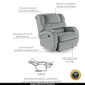 Que tal criar seu próprio home cinema? Aqui, vamos mostrar como você pode montar o seu! Com o local adequado, alguns itens decorativos e uma poltrona ideal, você garantirá um espaço confortável e imersivo. O primeiro passo é investir em equipamentos de alta qualidade! Olha só que lindeza a nossa Poltrona Reclinável do Papai Napoli. Ela foi projetada para proporcionar máximo conforto e funcionalidade, esta poltrona é a escolha ideal para quem busca relaxamento, estilo e uma experiência de cinema privada. Com capacidade para suportar até 110 kg oferecendo segurança e estabilidade ao consumidor. O revestimento em Sintético PU Cinza oferece um toque de sofisticação e conforto, enquanto a estrutura em Madeira Maciça de Eucalipto garante resistência e durabilidade. O sistema de abertura fácil permite ajustar a poltrona sem esforço: basta acionar o mecanismo power com controle de acionamento Bi-volt, onde possibilita que você encontre a posição perfeita com um simples toque de um botão. O encosto e o assento são sustentados por fibra siliconada e espuma D-28, no assento também possui Molas respectivamente para um conforto adicional. O assento (fixo) e o apoio de Pés Retrátil proporcionam um apoio perfeito para suas pernas, aumentando o conforto. O encosto reclinável, possibilita ajustá- lo para a posição ideal de relaxamento. Já os pés (fixos) foram feitos em madeira e revestidos em alumínio cromado, adicionando um toque de elegância ao produto. Com um design moderno e prático, esta poltrona se tornará o destaque da sua sala de estar. Afinal, sua casa merece a Poltrona do Papai Reclinável Napoli Controle Power Elétrico. Adquira a sua agora mesmo e transforme sua sala de estar em um verdadeiro cinema!