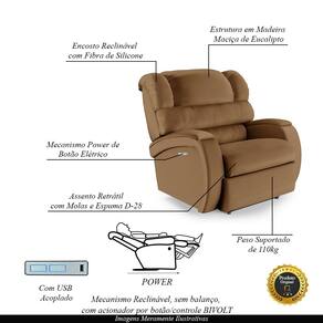 Que tal criar seu próprio home cinema? Aqui, vamos mostrar como você pode montar o seu! Com o local adequado, alguns itens decorativos e uma poltrona ideal, você garantirá um espaço confortável e imersivo. O primeiro passo é investir em equipamentos de alta qualidade! Olha só que lindeza a nossa Poltrona Reclinável do Papai Napoli. Ela foi projetada para proporcionar máximo conforto e funcionalidade, esta poltrona é a escolha ideal para quem busca relaxamento, estilo e uma experiência de cinema privada. Com capacidade para suportar até 110 kg oferecendo segurança e estabilidade ao consumidor. O revestimento em PU oferece um toque de sofisticação e conforto, enquanto a estrutura em Madeira Maciça de Eucalipto garante resistência e durabilidade. O sistema de abertura fácil permite ajustar a poltrona sem esforço: basta acionar o mecanismo power com controle de acionamento bivolt, onde possibilita que você encontre a posição perfeita com um simples toque de um botão LED. E tem mais, ela ainda conta com entrada USB e tipo C ideal para carregar seus eletrônicos enquanto descansa. O encosto e o assento são sustentados por fibra siliconada e espuma D-28, no assento também possui Molas respectivamente para um conforto adicional. O assento (fixo) e o apoio de Pés Retrátil proporcionam um apoio perfeito para suas pernas, aumentando o conforto. O encosto reclinável, possibilita ajustá- lo para a posição ideal de relaxamento. Já os pés (fixos) foram feitos em Aço Revestido com Plástico, adicionando um toque de elegância ao produto. Com um design moderno e prático, esta poltrona se tornará o destaque da sua sala de estar. Afinal, sua casa merece a Poltrona do Papai Reclinável Napoli Elétrica Botão LED. Adquira a sua agora mesmo e transforme sua sala de estar em um verdadeiro cinema!