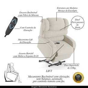 Que tal criar seu próprio home cinema? Aqui, vamos mostrar como você pode montar o seu! Com o local adequado, alguns itens decorativos e uma poltrona ideal, você garantirá um espaço confortável e imersivo. O primeiro passo é investir em equipamentos de alta qualidade! Olha só que lindeza a nossa Poltrona do Papai Reclinável Napoli. Ela foi projetada para proporcionar máximo conforto e funcionalidade, esta poltrona é a escolha ideal para quem busca relaxamento, estilo e uma experiência de cinema privada. E ela ainda conta com Controle Elétrico sem fio Bi Volt, mecanismo LIFT que é uma inovação que permite ajustar a inclinação e elevação da poltrona de forma suave, ideal para quem precisa de conforto e suporte após um longo dia. Sendo ideal para Idosos pois facilita o movimento de sentar e levantar, reduzindo o esforço físico; pessoas com mobilidade reduzida; pessoas com problemas nas articulações coluna/apenas ou para quem busca relaxamento. Ela conta com capacidade para suportar até 110 kg, oferecendo segurança e estabilidade ao consumidor. O revestimento em Veludo Bege oferece um toque de sofisticação e conforto, enquanto a estrutura em madeira de eucalipto proveniente de reflorestamento garante resistência e durabilidade. O assento/ braços foi preenchido com fibra siliconada No assento contém molas e espuma D-28, respectivamente, para um conforto adicional. O assento (fixo) e o apoio de Pés Retrátil proporcionam um apoio perfeito para suas pernas, aumentando o conforto. O encosto reclinável, possibilita ajustá- lo para a posição ideal de relaxamento. Já os pés fixos foram feitos em aço revestido com plástico, adicionando um toque de elegância ao produto. Com um design moderno e prático, esta poltrona se tornará o destaque da sua sala de estar. Afinal, sua casa merece a Poltrona do Papai Reclinável Napoli Elevação Lift Elétrico. Adquira a sua agora mesmo e transforme sua sala de estar em um verdadeiro cinema!