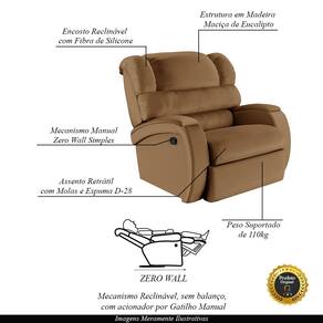 Que tal criar seu próprio home cinema? Aqui, vamos mostrar como você pode montar o seu! Com o local adequado, alguns itens decorativos e uma poltrona ideal, você garantirá um espaço confortável e imersivo. O primeiro passo é investir em equipamentos de alta qualidade! Olha só que lindeza a nossa Poltrona do Papai Reclinável Napoli. Ela foi projetada para proporcionar máximo conforto e funcionalidade, esta poltrona é a escolha ideal para quem busca relaxamento, estilo e uma experiência de cinema privada. A fusão de um encosto reclinável com sistema zero wall, que se move para frente durante o reclínio, eliminando a necessidade de espaço adicional para afastamento de paredes, junto com um apoio para os pés ativado manualmente, oferece uma experiência completa de relaxamento, ocupando pouco espaço na área traseira da poltrona. O mecanismo da poltrona em aço é feito manualmente, utilizando um gatilho localizado na lateral da poltrona. Ao puxar ou pressionar esse gatilho, o usuário pode reclinar o encosto ou levantar o apoio para os pés, ajustando a poltrona à posição desejada. Ela conta com capacidade para suportar até 110 kg, oferecendo segurança e estabilidade ao consumidor. O revestimento em PU Caramelo oferece um toque de sofisticação e conforto, enquanto a estrutura em madeira de eucalipto proveniente de reflorestamento garante resistência e durabilidade. O encosto foi preenchido com fibra siliconada. O assento foi preenchido com molas e espuma D-28, respectivamente, para um conforto adicional. O assento e o apoio de Pés Retrátil proporcionam um apoio perfeito para suas pernas, aumentando o conforto. Já os pés fixos foram feitos em aço revestido com plástico, adicionando um toque de elegância ao produto. Com um design moderno e prático, esta poltrona se tornará o destaque da sua sala de estar. Afinal, sua casa merece a Poltrona do Papai Reclinável Napoli Manual Gatilho. Adquira a sua agora mesmo e transforme sua sala de estar em um verdadeiro cinema!