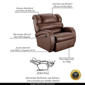 Que tal criar seu próprio home cinema? Aqui, vamos mostrar como você pode montar o seu! Com o local adequado, alguns itens decorativos e uma poltrona ideal, você garantirá um espaço confortável e imersivo. O primeiro passo é investir em equipamentos de alta qualidade! Olha só que lindeza a nossa Poltrona do Papai Reclinável Napoli. Ela foi projetada para proporcionar máximo conforto e funcionalidade, esta poltrona é a escolha ideal para quem busca relaxamento, estilo e uma experiência de cinema privada. A fusão de um encosto reclinável com sistema zero wall, que se move para frente durante o reclínio, eliminando a necessidade de espaço adicional para afastamento de paredes, junto com um apoio para os pés ativado manualmente, oferece uma experiência completa de relaxamento, ocupando pouco espaço na área traseira da poltrona. O mecanismo da poltrona em aço é feito manualmente, utilizando um gatilho localizado na lateral da poltrona. Ao puxar ou pressionar esse gatilho, o usuário pode reclinar o encosto ou levantar o apoio para os pés, ajustando a poltrona à posição desejada. Ela conta com capacidade para suportar até 110 kg, oferecendo segurança e estabilidade ao consumidor. O revestimento em PU Marrom Brilho oferece um toque de sofisticação e conforto, enquanto a estrutura em madeira de eucalipto proveniente de reflorestamento garante resistência e durabilidade. O encosto foi preenchido com fibra siliconada. O assento foi preenchido com molas e espuma D-28, respectivamente, para um conforto adicional. O assento e o apoio de Pés Retrátil proporcionam um apoio perfeito para suas pernas, aumentando o conforto. Já os pés fixos foram feitos em aço revestido com plástico, adicionando um toque de elegância ao produto. Com um design moderno e prático, esta poltrona se tornará o destaque da sua sala de estar. Afinal, sua casa merece a Poltrona do Papai Reclinável Napoli Manual Gatilho. Adquira a sua agora mesmo e transforme sua sala de estar em um verdadeiro cinema!