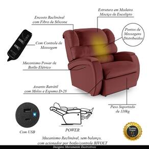 Diferenciais: Poltrona Elétrica com Massagem, apoio de pés retrátil, botão com LED para acionamento