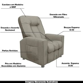 Diferenciais: Apoio de pés retrátil, bolso lateral para revistas e livros