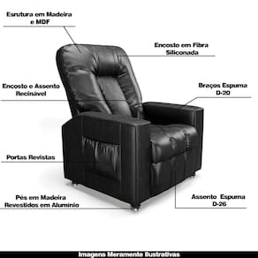 Diferenciais: Apoio de pés retrátil, bolso lateral para revistas e livros