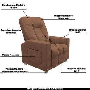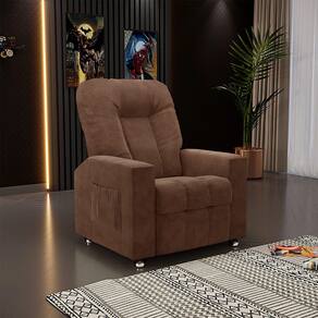 Que tal criar seu próprio home cinema? Aqui, vamos mostrar como você pode montar o seu! Com o local adequado, alguns itens decorativos e uma poltrona ideal, você garantirá um espaço confortável e imersivo. O primeiro passo é investir em equipamentos de alta qualidade! Olha só que lindeza a nossa Poltrona Reclinável do Papai Sora. Ela foi projetada para proporcionar máximo conforto e funcionalidade, esta poltrona é a escolha ideal para quem busca relaxamento, estilo e uma experiência de cinema privada. Seu mecanismo reclinável permite ajustar a poltrona conforme suas necessidades, independente, com 2 estágios e 3 posições ajustáveis, seja para assistir a um filme, ler um livro ou simplesmente descansar. Com capacidade para suportar até 110kg oferecendo segurança e estabilidade ao consumidor. O revestimento em Veludo oferece um toque de sofisticação e conforto, enquanto a estrutura em madeira de eucalipto garante resistência e durabilidade. O sistema de abertura fácil permite ajustar a poltrona sem esforço: basta colocar as mãos nos braços, inclinar o corpo para trás e empurrar as mãos para frente. O encosto e o assento são sustentados por percintas elásticas. Eles são preenchidos com fibra siliconada e espuma D-26 Soft, respectivamente, para um conforto adicional. Os Encosto e Assento da poltrona é reclinável e nos braços contêm enchimento em espuma D-20, proporcionando um apoio suave e confortável. O assento (fixo) e o apoio de Pés Retrátil proporcionam um apoio perfeito para suas pernas, aumentando o conforto. O encosto reclinável, possibilita ajustá- lo para a posição ideal de relaxamento. Já os pés (fixos) foram feitos em madeira e revestidos em alumínio cromado, adicionando um toque de elegância ao produto. E tem mais!! Ela contém um revisteiro lateral prático nas braças com um bolso prático para armazenar revistas e livros, mantendo tudo ao seu alcance. Com um design moderno e prático, esta poltrona se tornará o destaque da sua sala de estar. Afinal, sua casa merece a Poltrona Reclinável do Papai Sora. Adquira a sua agora mesmo e transforme sua sala de estar em um verdadeiro cinema!