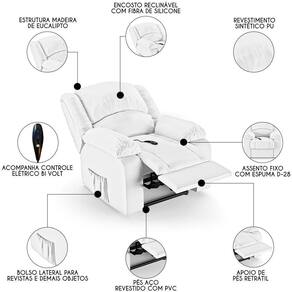 Imagine transformar sua Sala De Estar em um espaço de entretenimento de última geração com a Poltrona do Papai Reclinável Pietra Controle Power Elétrico FH9 Sintético PU Branco, da Mpozenato!