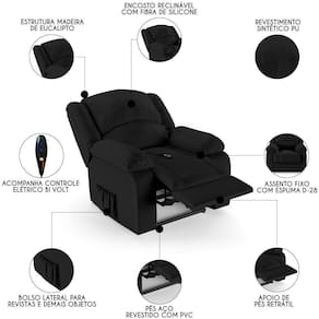 Imagine transformar sua Sala De Estar em um espaço de entretenimento de última geração com a Poltrona do Papai Reclinável Pietra Controle Power Elétrico FH9 Sintético PU Preto, da Mpozenato!
