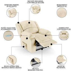 Hora de deixar a sua Sala De Estar mais moderna e transformar em um espaço de entretenimento de última geração com a Poltrona do Papai Reclinável Pietra Elétrica LED FH9 PU Bege, da Mpozenato!