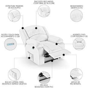 Hora de deixar a sua Sala De Estar mais moderna e transformar em um espaço de entretenimento de última geração com a Poltrona do Papai Reclinável Pietra Elétrica LED FH9 PU Branco, da Mpozenato!