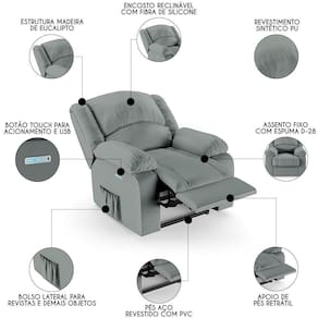 Hora de deixar a sua Sala De Estar mais moderna e transformar em um espaço de entretenimento de última geração com a Poltrona do Papai Reclinável Pietra Elétrica LED FH9 PU Cinza, da Mpozenato!