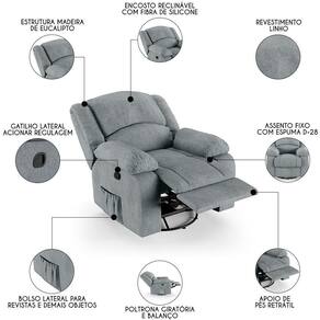 Transforme a sua Sala De Estar em um espaço de entretenimento comparável a uma sala de cinema privada! A Poltrona do Papai Reclinável Pietra Glider Giratória FH9 Linho Cinza, da Mpozenato é a adição perfeita para alcançar esse sonho.