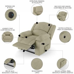 Hora de inovar a sua Sala de Estar com a Poltrona do Papai Reclinável Pietra Power Elétrica USB FH9 Linho Bege, da Mpozenato!
