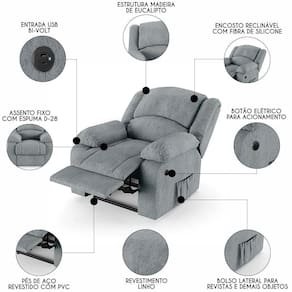 Hora de inovar a sua Sala de Estar com a Poltrona do Papai Reclinável Pietra Power Elétrica USB FH9 Linho Cinza, da Mpozenato!