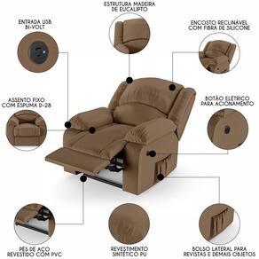 Hora de inovar a sua Sala de Estar com a Poltrona do Papai Reclinável Pietra Power Elétrica USB FH9 PU Caramelo, da Mpozenato!