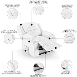 Hora de deixar a sua Sala De Estar mais moderna e transformar em um espaço de entretenimento de última geração com a Poltrona do Papai Reclinável Pietra Power Touch FH9 PU Branco, da Mpozenato!