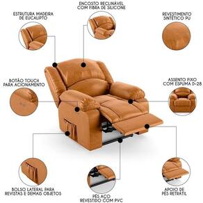 Hora de deixar a sua Sala De Estar mais moderna e transformar em um espaço de entretenimento de última geração com a Poltrona do Papai Reclinável Pietra Power Touch FH9 PU Whisky, da Mpozenato!