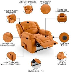 Conheça a Poltrona do Papai Reclinável Pietra Power Touch USB FH9 PU Whisky, da Mpozenato. Ideal para transformar a sua Sala De Estar em um espaço de entretenimento de última geração!