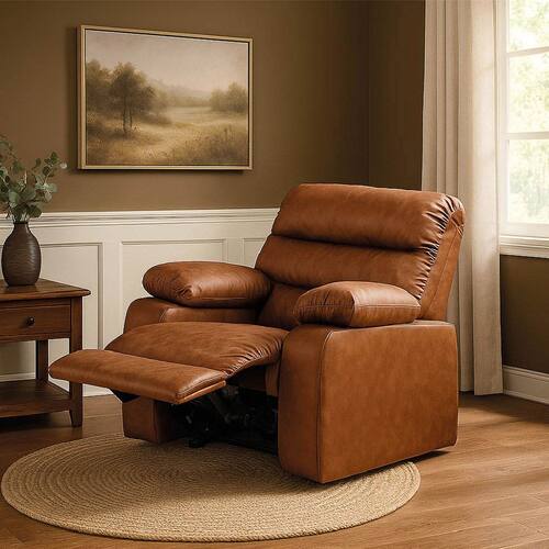 A Poltrona do Papai Reclinável Retrátil Naaman em revestimento Sintético PU é a escolha ideal para quem busca praticidade, resistência e bem-estar em um só móvel. Sua estrutura é produzida em madeira de eucalipto tratada com reforços em MDF, suportando até 150 kg. O assento possui espuma D-33 com percintas elásticas, molas Zig e ensacadas, oferecendo sustentação firme sem abrir mão da maciez. Já o encosto, preenchido com fibra siliconada, traz a sensação de aconchego que completa a experiência. Os braços também contam com enchimento em fibra 100% siliconada, enquanto o mecanismo retrátil, acionado por alavanca lateral, possibilita ajustar o apoio para os pés e reclinar em 2 posições, proporcionando momentos de relaxamento em qualquer ambiente. Os pés fixos em madeira tabaco, parafusados, dão estabilidade e um toque elegante à peça. A poltrona acomoda perfeitamente um lugar, mantendo proporções ideais para sala de estar, quarto ou até escritório.