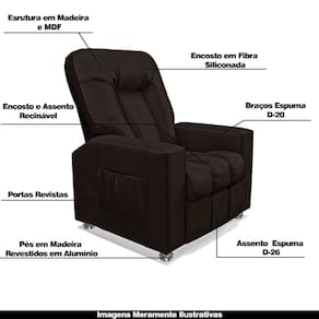 Desenvolvida para superar as suas expectativas, a Poltrona do Papai Reclinável, veio para trazer a experiência cinematográfica sem você sair do conforto de seu lar. Esta poltrona é uma excelente escolha para qualquer ambiente, seja ele sua sala de estar, quarto ou até mesmo sala de cinema, além disso, a poltrona é feita com materiais de alta qualidade, garantindo durabilidade e resistência para longas horas de uso. Uma peça única, confortável e pronta para você. Não perca tempo, adquira já a sua.