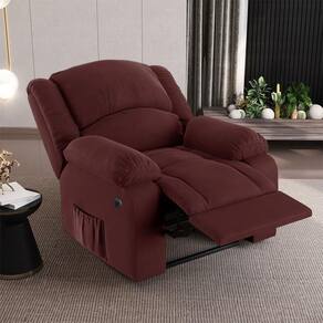 Poltrona Do Papai Reclinável Sala De Cinema Barcelona Power Elétrica Massagem Usb Veludo Vinho G23
