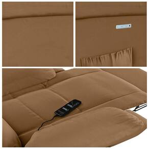 Poltrona do Papai Barcelona - Gran Belo Seja para assistir TV, ler um livro, até mesmo uma sala de cinema ou simplesmente relaxar. Com um design clássico e elegante, a poltrona também possui uma saída USB, que permite que você carregue seu celular ou tablet enquanto assiste ao seu filme favorito. Ela é bivolt, podendo ser usada em qualquer tomada. Além disso, ela tem um apoio para os pés, que se eleva junto com o encosto, proporcionando uma posição mais ergonômica e confortável, com braços largos e apoio para os pés após reclinar ela, oferecendo um conforto inigualável. Não perca essa chance de adquirir a poltrona do papai reclinável elétrica Barcelona da Gran Belo, uma peça única que vai trazer mais conforto e sofisticação para sua sala de cinema.
