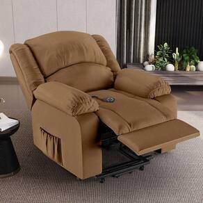 Versátil e prática, a Poltrona do Papai é bivolt, adaptando-se a qualquer tomada, e oferece um apoio para os pés que se eleva harmoniosamente com o encosto, promovendo uma posição ergonomicamente correta e confortável. Os braços largos e o suporte para os pés após o reclinamento garantem um conforto incomparável.