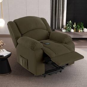 Poltrona Do Papai Reclinável Sala De Cinema Barcelona Elevação Lift Elétrico Veludo Verde Esmeralda - Blush