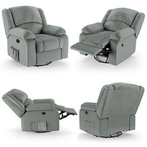 Poltrona Do Papai Reclinável Sala De Cinema Barcelona Glider Manual Giratória Massagem Usb Pu Cinza G23