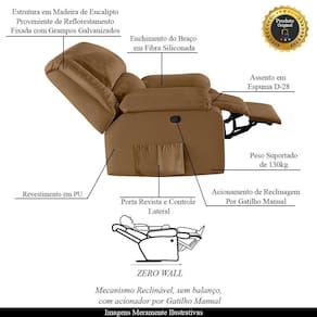 Assento/Encosto: Enchimento em Espuma D-28, com Acionamento Reclinável Elétrico por Gatilho Manual em uma das Braças