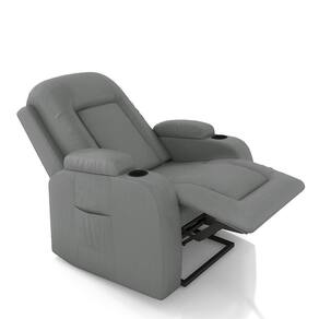 Portas Copos: 2, um em cada braço Tipo de Base: Fixa com elevação, para facilidade no acesso. Material dos Pés: Aço Revestido com Plástico Revestimento: PU Peso Suportado: 110kg; Conteúdo da Embalagem: 1 Poltrona Necessita de Montagem: Não Instruções/Cuidado: Recomendado somente limpeza com pano umedecido