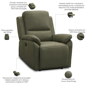 Color: Verde | ColorSimple: Verde | Model: Aniche | Estilo: Moderno | Material: Madeira de Eucalipto, Espuma D-26 | ColorSupplier: Verde Musgo | ColorFamily: Verde | OriginCountry: | OriginState: PR | ProductContents: 01 Poltrona | SizeDescription: Altura: 102 cm x Largura: 82 cm x Profundidade: 97 cm | SupplierSimpleName: Poltrona do Papai Retrátil Reclinável Elétrica Aniche L06 Couro Verde Musgo - Lyam Decor | ProductLength: 97 cm | ProductWidth: 82 cm | ProductWarranty: 90 dias após o do produto | ProductHeight: 102 cm | ProductInstructions: Produto para uso em ambiente interno, nao devendo ficar exposto ao sol, calor e umidade excessivos. | MaterialFamily: Eucalipto, Espuma | Cor: Verde Musgo