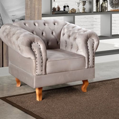 Poltrona Dom Pedro Chesterfield Retrô Decorativa Cinza Capuccino