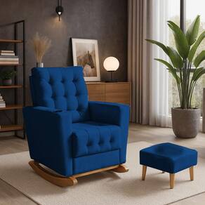 Poltrona Duna Amamentação Balanço e Puff Marinho - Azul | Marinho