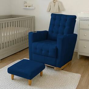 Poltrona Duna Amamentação Balanço e Puff Marinho - Azul