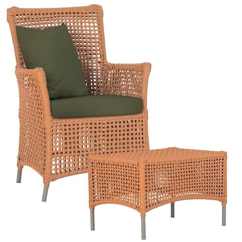 A corda nautica adiciona um toque de rusticidade moderna, enquanto o estofado impermeavel garante que sua poltrona esteja sempre impecavel, mesmo apos uma chuva inesperada ou um acidente com liquidos.