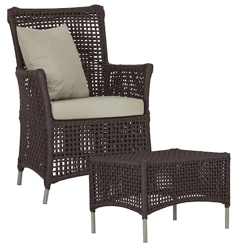 A corda nautica adiciona um toque de rusticidade moderna, enquanto o estofado impermeavel garante que sua poltrona esteja sempre impecavel, mesmo apos uma chuva inesperada ou um acidente com liquidos.