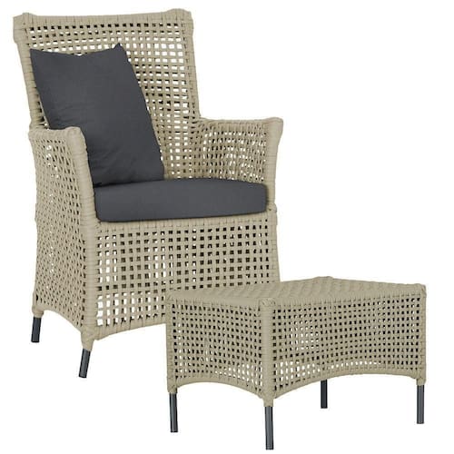 A corda nautica adiciona um toque de rusticidade moderna, enquanto o estofado impermeavel garante que sua poltrona esteja sempre impecavel, mesmo apos uma chuva inesperada ou um acidente com liquidos.