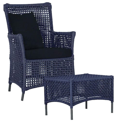 Itens Inclusos: 01 Poltrona e 01 Mesa Igapo em Aluminio Pintura Preta Corda Nautica Estofado 12