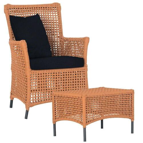 Itens Inclusos: 01 Poltrona e 01 Mesa Igapo em Aluminio Pintura Preta Corda Nautica Estofado 12