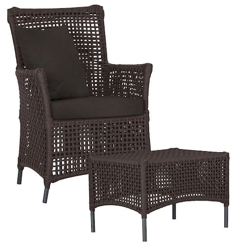 Poltrona E Mesa Igapó Em Alumínio Preta Corda Náutica E9 Marrom