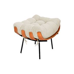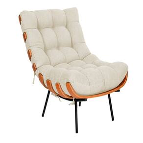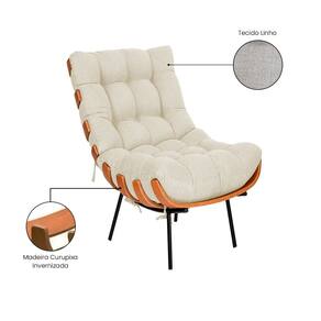 Poltrona e Puff Costela Base Metálica Fixa no Linho - Vallisa Decor - Bege